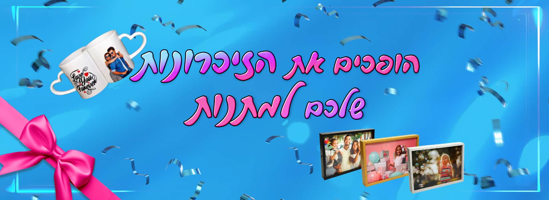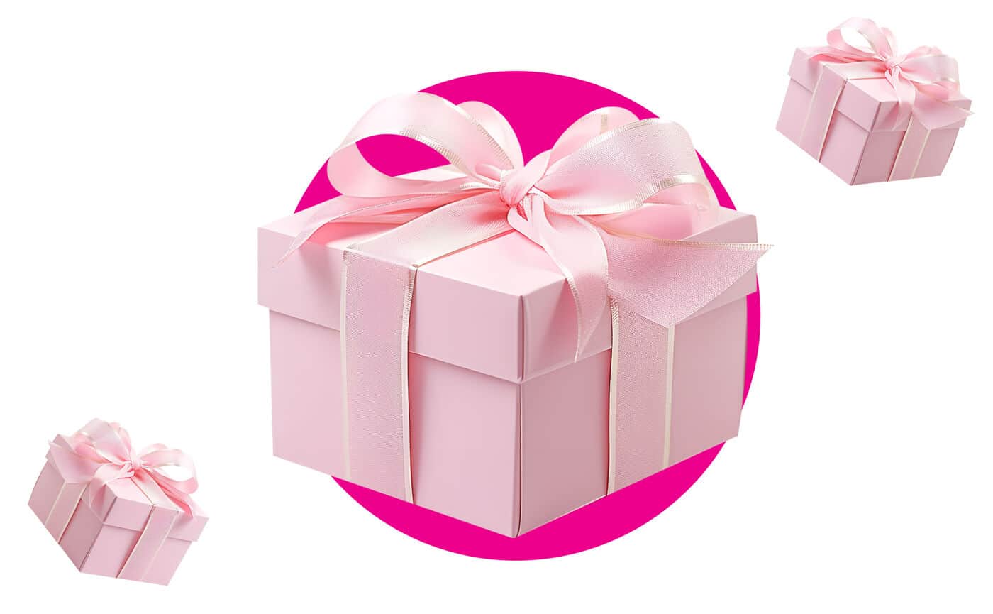 מבחר מתנות במגוון צבעים, צורות ודוגמאות